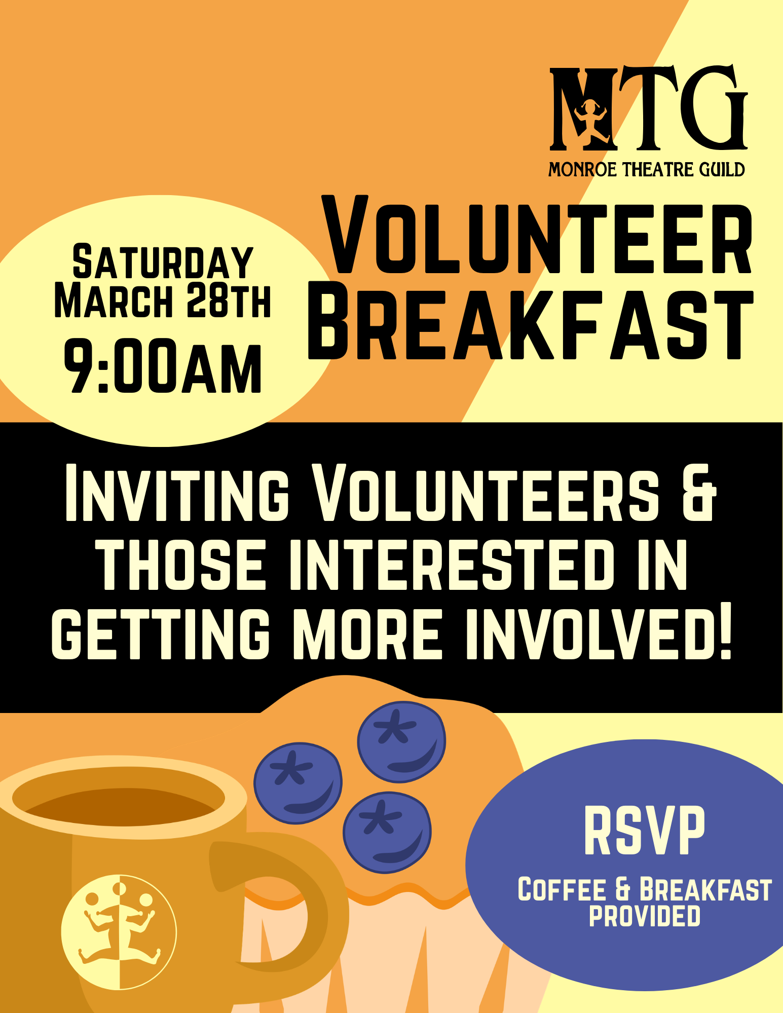 Our Volunteer Breakfast welcomes those who volunteer occasionally, frequently, or are looking to become more involved.